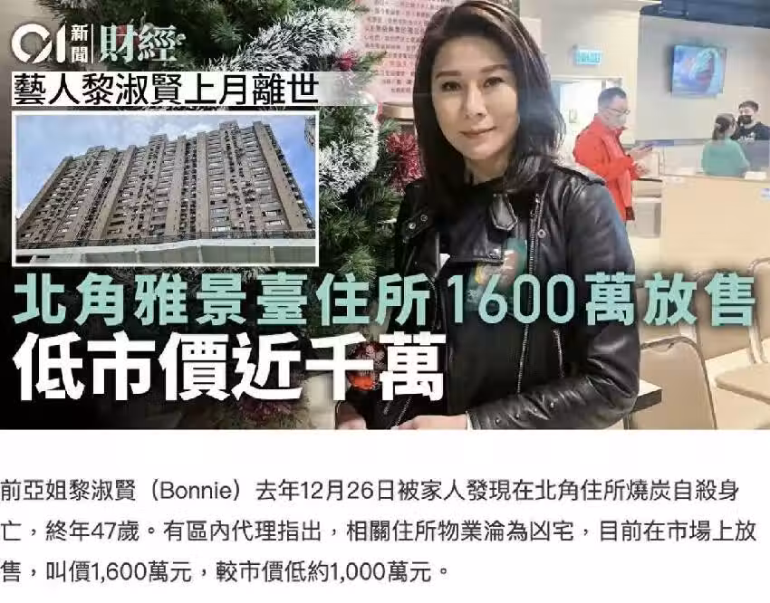 所謂人走茶涼,大概就是這麼一個意思,所以事故發生後不到一個月,黎淑賢燒炭致死的寓所就立即被出售。