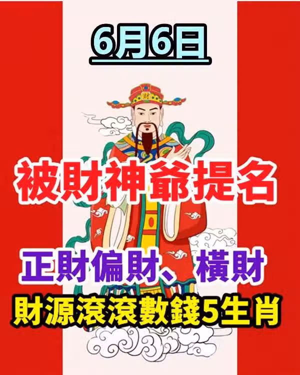6月6日被財神爺提名,正財偏財、橫財,財源滾滾數錢的生肖!
