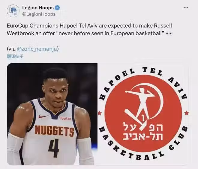 威少的死對頭貝弗利,上賽季就是在以色列特拉維夫哈普爾俱樂部打球,年薪200萬美元+100萬美元奪冠獎金,並且包吃包住。要是威少在以色列也只能享受貝弗利的待遇,那他不會有太大的動力前往,畢竟下賽季在NBA的年薪都有347萬美元。