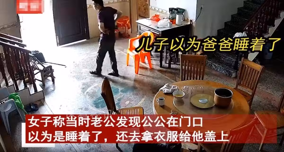 7點55分,兒子醒來後下樓,此時距離老人起來已經過去了1小時,兒子看著父親坐在門口還在奇怪,今天怎麼父親沒出去走走。
