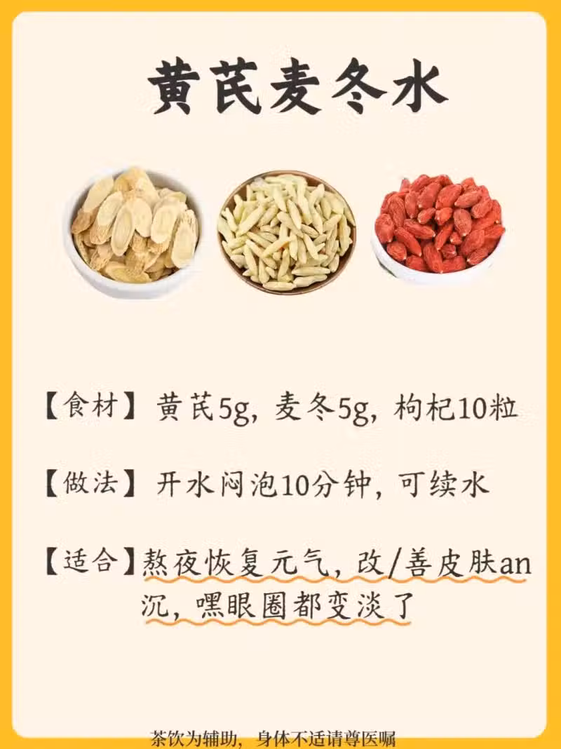 ✔️枸杞滋陰補腎,麥冬潤肺生津,黃芪補氣提神。改/善皮膚暗沉,黑眼圈都變淡了!