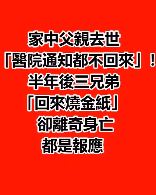 家中父親去世「醫院通知都不回來」!半年後三兄弟「回來燒金紙」卻離奇身亡:都是報應