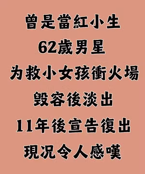 曾是當紅小生!62歲男星「為救小女孩沖火場」毀容淡出 「11年後宣告復出」現況令人感嘆