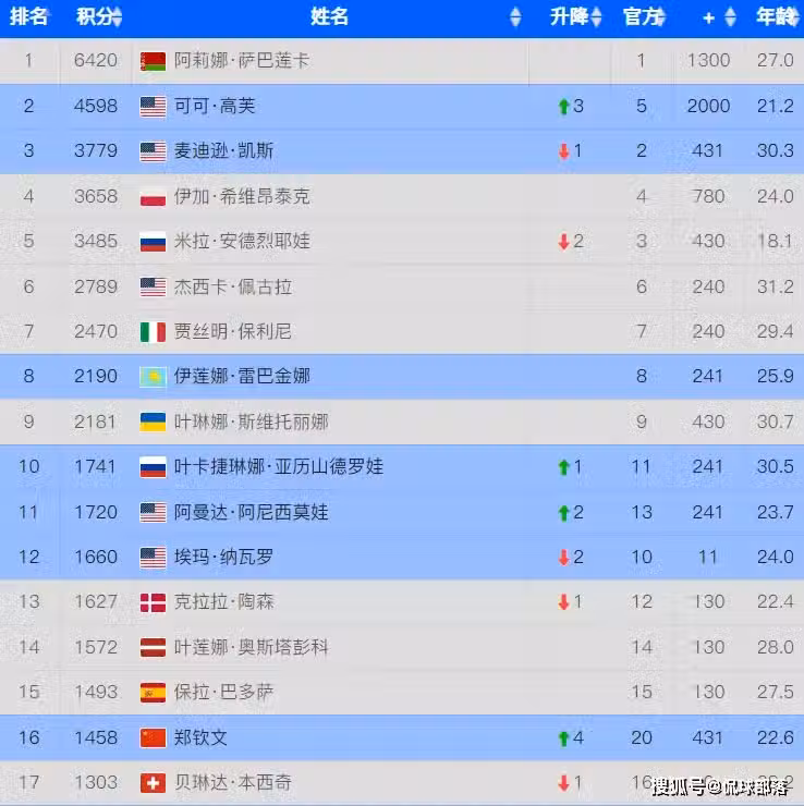 高芙已在本年度拿到了4598分,穩居第二,外加世界排名不可能跌出前八,所以提前鎖定一個年終總決賽的入場券。還有薩巴倫卡,薩巴倫卡已在本年度拿到了6420分,也是唯一一位超過6000分的選手。