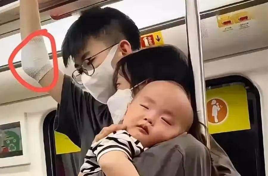 圖片中即使父親心疼孩子有些吃力,但為了孩子能安穩的睡覺,即使累了也在拍打孩子。