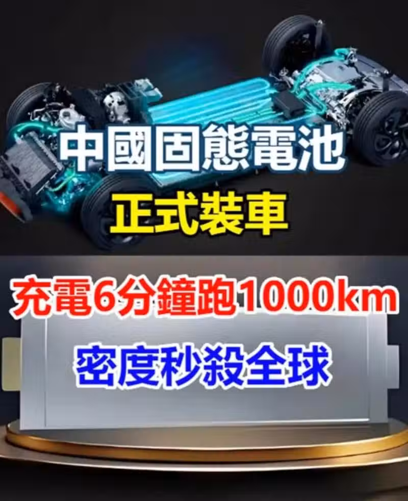 中國固態電池正式裝車,充電6分鐘跑1000km,密度秒殺全球