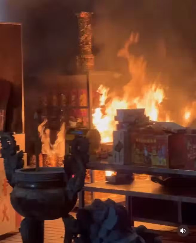 而廟方主委也PO出當時畫面,宮內突然竄出火舌,一瞬間幾乎整間宮廟都陷入火海,搶救財物的機會都沒有,因為當時還有很多香客,所以大家都急著逃命。