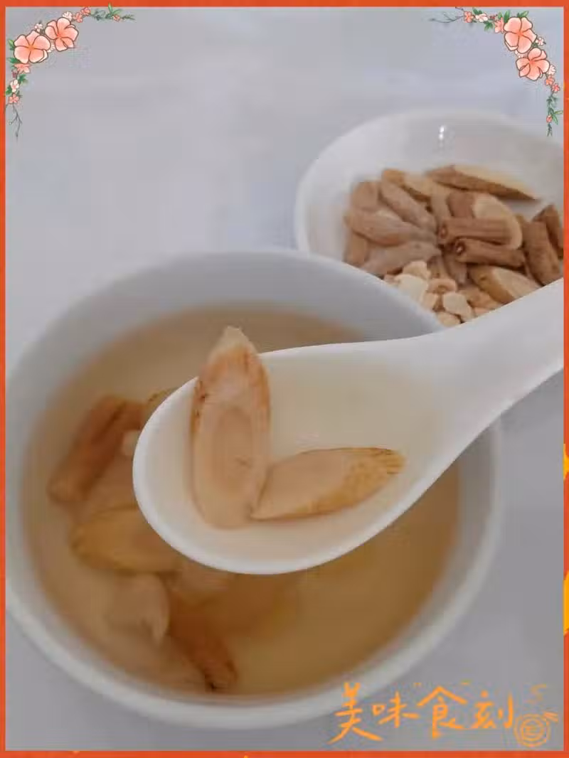這碗黃芪水可是「元氣四寶茶」,喝了之後能讓人感覺更有勁兒,還能養脾胃,關鍵是喝了不會上火。這茶里的幾種材料搭配起來,讓人感覺整個人都更有活力了。