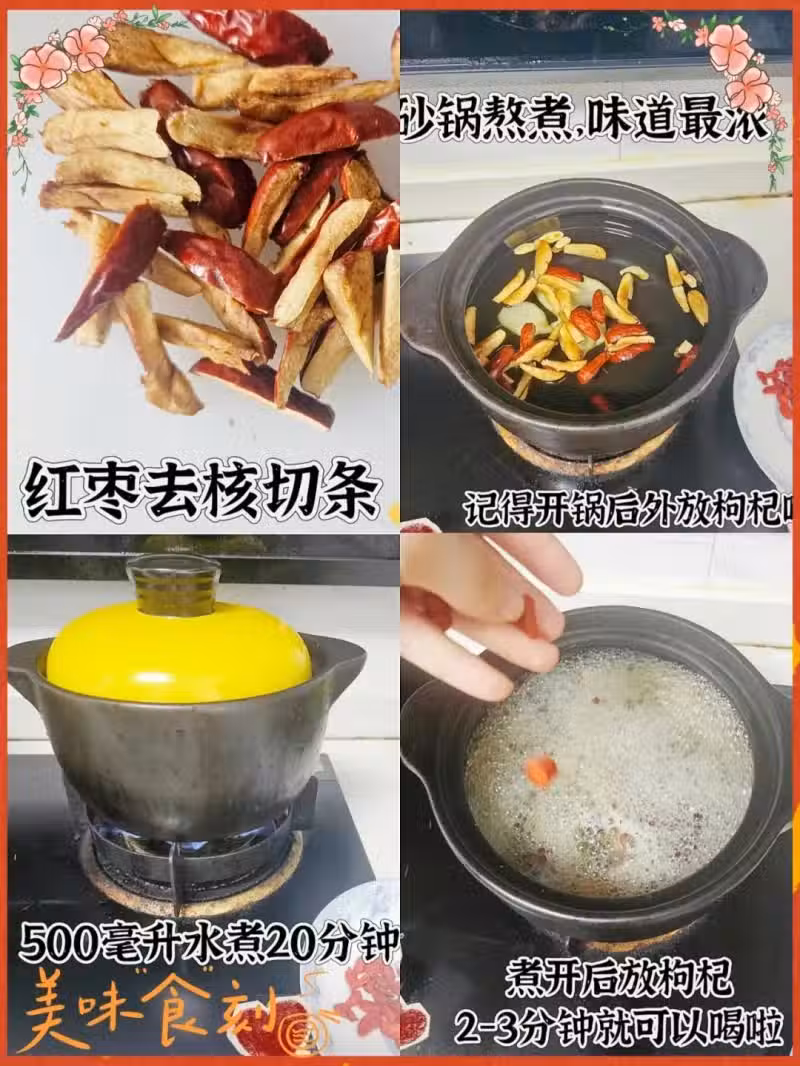 1. 把紅棗、黃芪和生薑放砂鍋里。
