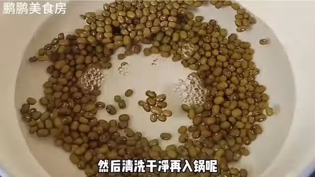 首先,把綠豆洗乾淨過後,咱們可以在綠豆裡面加入一勺白砂糖,然後把糖和綠豆這樣均勻的抓一抓,最後只需要用手這樣不斷的戳戳戳,因為白糖它顆粒感強,而這樣戳的過程當中,會與綠豆表面產生很大的摩擦力,這樣就能起到一個,將綠豆表面保護膜給活化掉的作用!