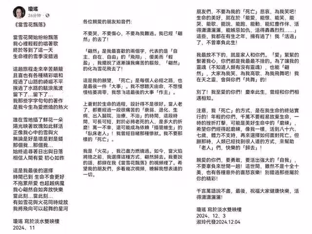 她的「翩然離去」,讓全網掀起一場對生命的探討。