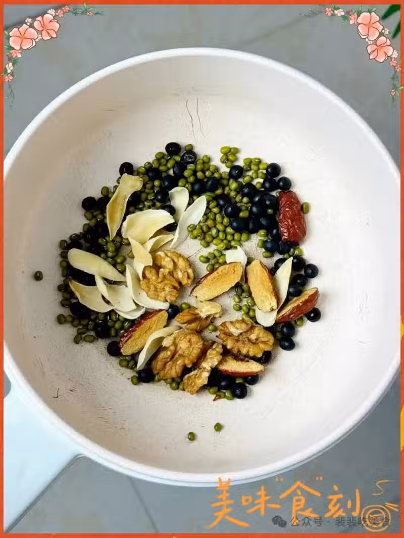 干百合50克、黑豆15克(選切開有綠心的)、綠豆10克、
