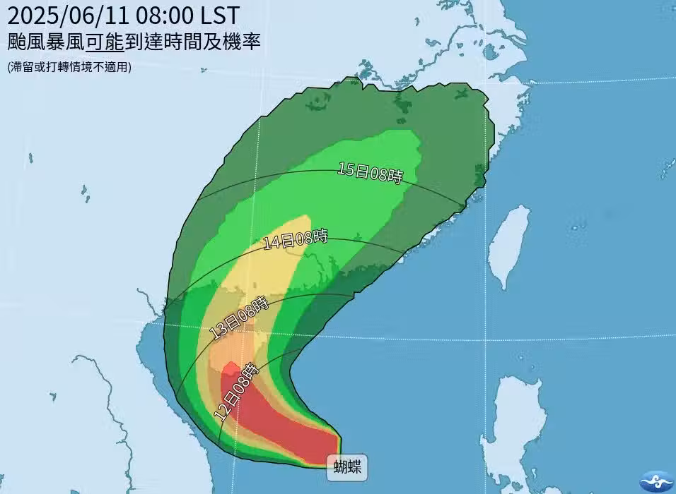 准蝴蝶颱風雖然不會直接影響台灣,不過因颱風帶動整個低壓帶北抬,外圍水汽仍會造成台灣各地出現劇烈降雨,由其中、南部易有雷雨,沿海風浪也會明顯增加,預計周四 (12) 至周六 (14) 雨勢會最為顯著。