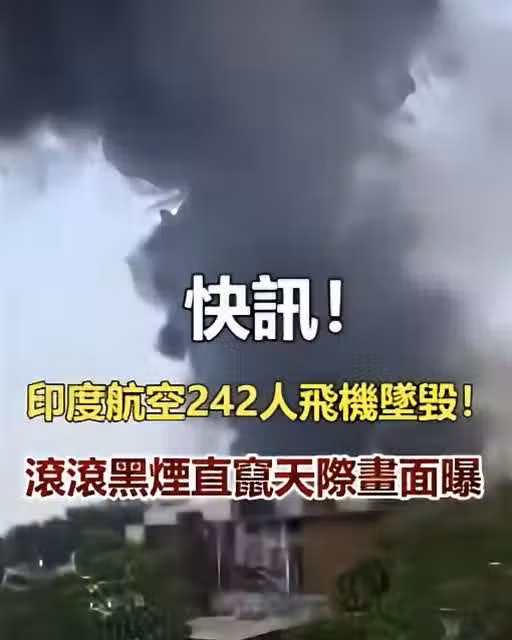 快訊/印度航空242人飛機墜毀!滾滾黑煙直竄天際畫面曝!