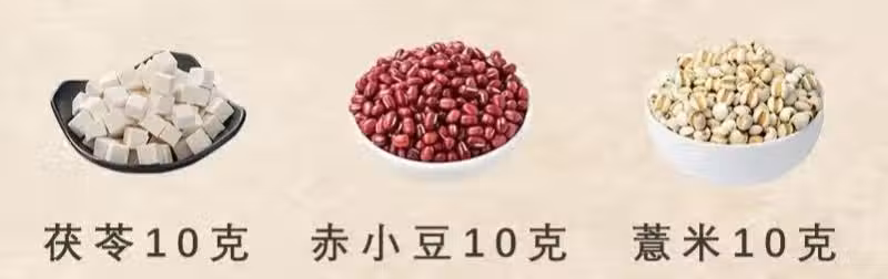 亮點:赤小豆比紅豆更利水,薏米炒後溫和,茯苓助脾運化水濕。三者等量煮水,喝前加少許陳皮調味。