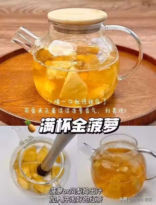 做法:菠蘿壓出汁+倒入泡好的紅茶(可加氣泡水)。