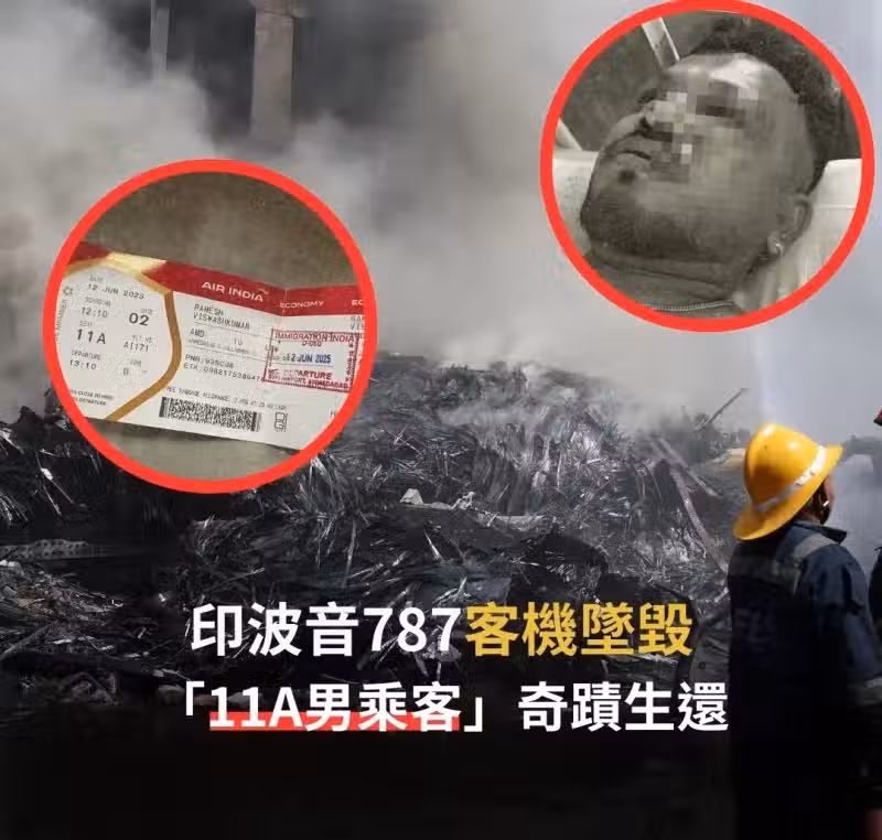 印度航空墜機「唯一倖存者」拿手機走出!機上座位曝光 靠1招逃生