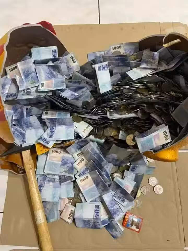 年末殺豬公! 他存一整年「打破豬公畫面超狂」一片藍藍紙鈔海「總額突破6位數」網友全跪了