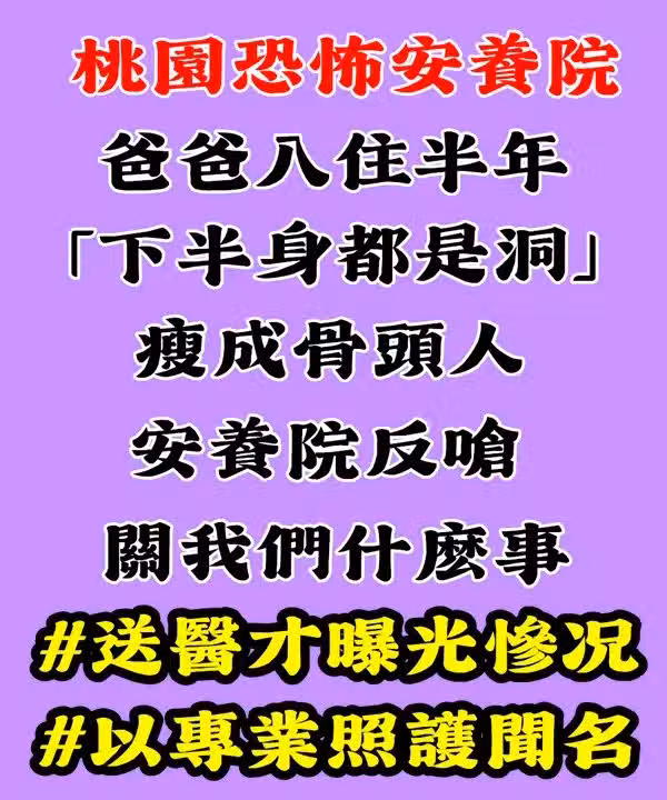 桃園恐怖安養院!爸爸入住半年「下半身都是洞...」瘦成骨頭人 家屬自責「親手推入火坑」安養院反嗆:關我們什麼事