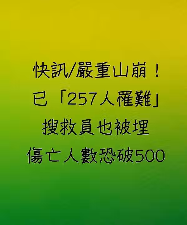 快訊/嚴重山崩! 已「257人罹難」 搜救員也被埋 傷亡人數恐破500