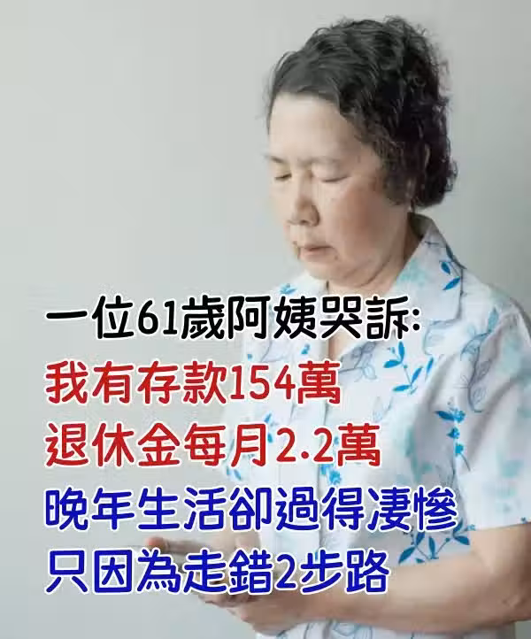 每月可領5千(約2.2萬台幣)退休金,晚年卻過得悽慘,造成這一切的原因都怪我走錯兩步路。」