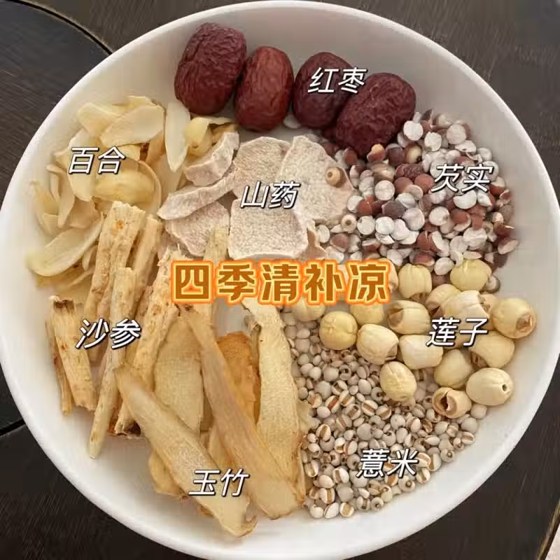食材:沙參、玉竹、蓮子、百合、薏米、芡實、山藥、紅棗