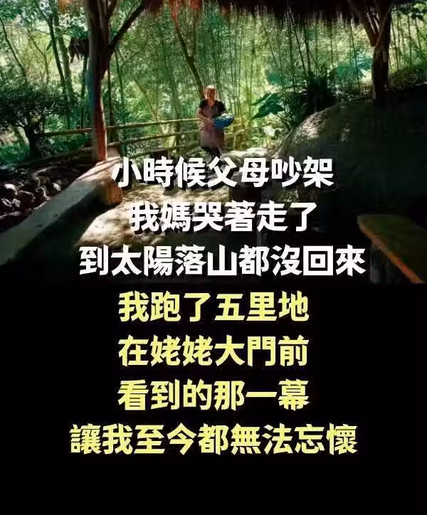 小時候父母吵架,我媽哭著走了,到太陽落山都沒回來,我跑了五里地,在姥姥大門前看到的那一幕,讓我至今都無法忘懷!