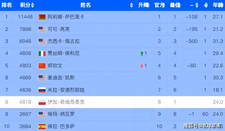 所以,目前的即時排名,鮑里妮重返世界第四,鄭欽文掉回世界第五,不過雙方的差距只有3分。