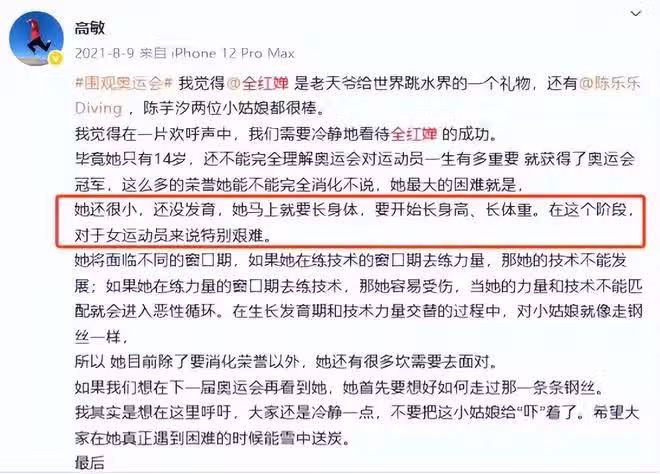 無緣冠軍一周,全紅嬋凌晨發文暴露真實現況,父親的擔心應驗了