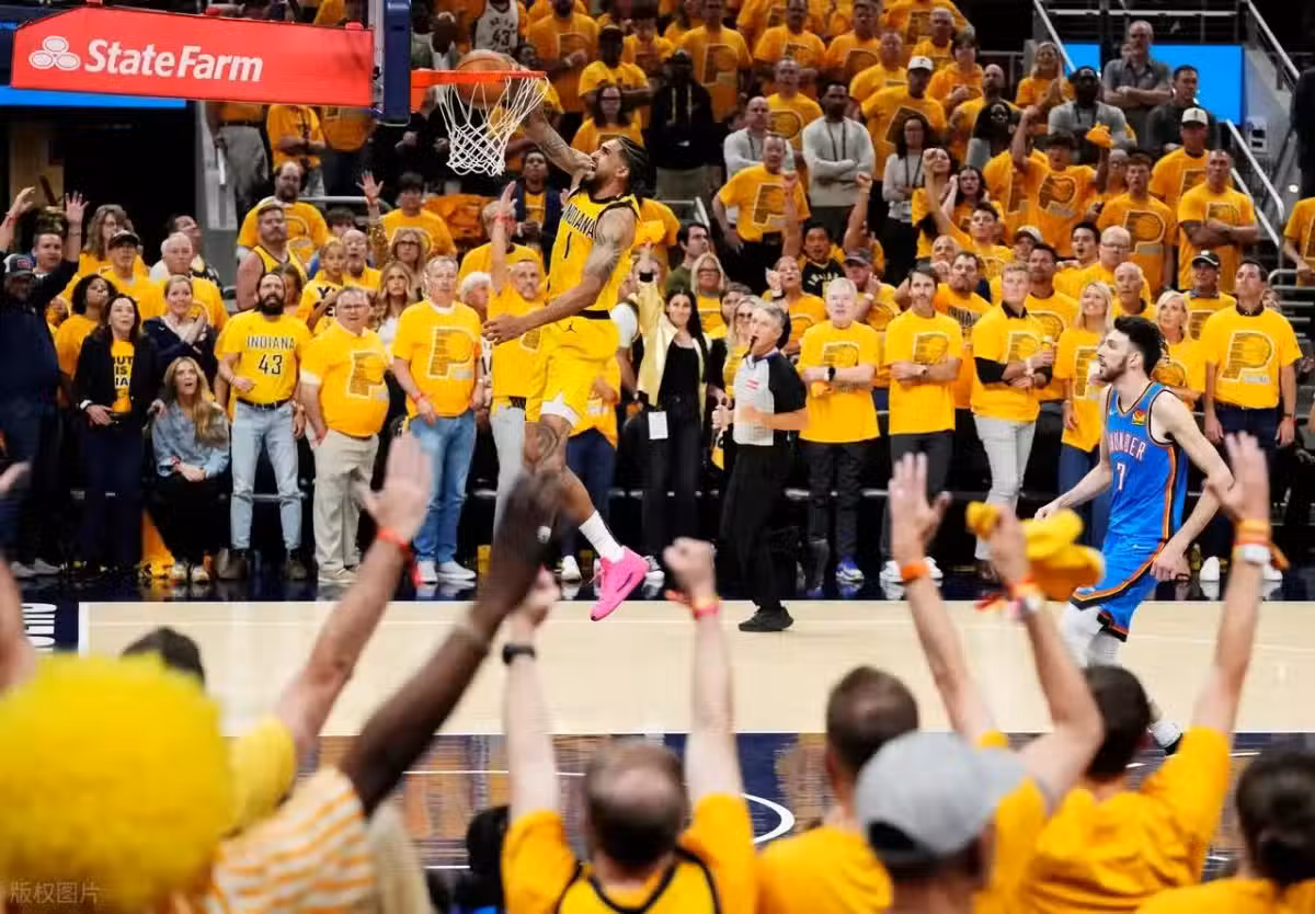 下半場剛一開始,雙方便大舉壓上,步行者球員托平用兩記底角三分直接干蒙雷霆。這個場均僅8分的普通球員,竟在此刻化身窮人版克萊,進球後的他還不忘去雷霆的替補席聳肩嘲諷,氣得多爾特差點問候他全家。而更恐怖的當屬西亞卡姆,他不僅單節送出3次搶斷,還在一次回防中大帽杰倫威廉士,這完美攻防意識就連對手球迷也紛紛稱讚。