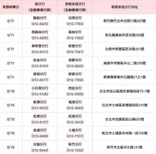 今年上半年已有內科園區等10家分行完成搬遷,加上此次暫停營業的10家分行,累計共有20個據點進行調整。