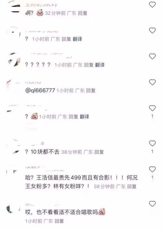 部分網民覺得王浩信的演唱會,最貴票價才499而且還有合影,林夏薇的音樂會價格要定699,這是認真的嗎?