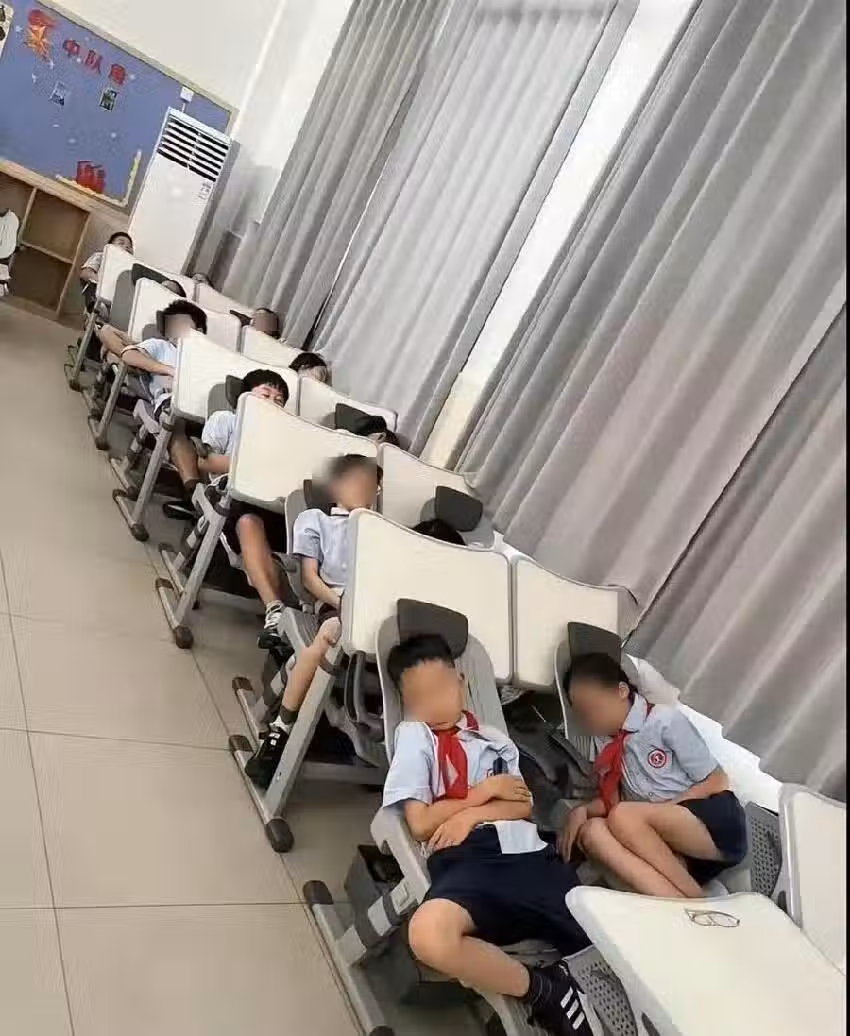 長時間這樣,孩子的脊椎和腰椎會不會受影響?」另一位家長緊接著留言:「我兒子回家說每次睡醒都腰酸背痛,這種椅子根本不是為睡覺設計的吧?」老師很快意識到事情不對,匆忙收回照片,但照片早已被家長截圖,並傳到了網絡上,隨即引起兩派論戰,甚至演變成了一場「午睡方式大辯論」。