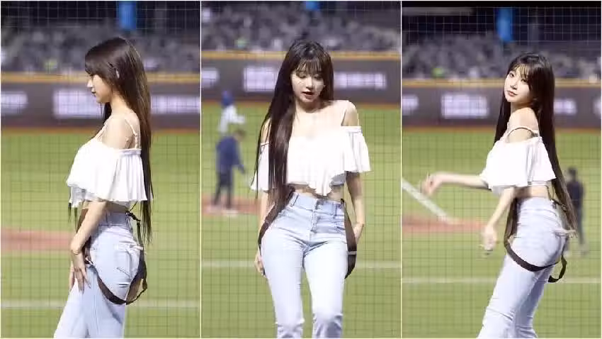 從畫面中可見(上圖),李珠珢身穿白色上衣,淺藍色貼身牛仔褲,胸前的設計就像浪花一樣,會隨著舞姿變化跟著擺動,不過就在跳舞過程中,李珠珢的上衣肩帶疑似因太松,不小心滑落,炸出超凶大麻糬,但幸好裡面還有穿一件,才沒有導致走光。