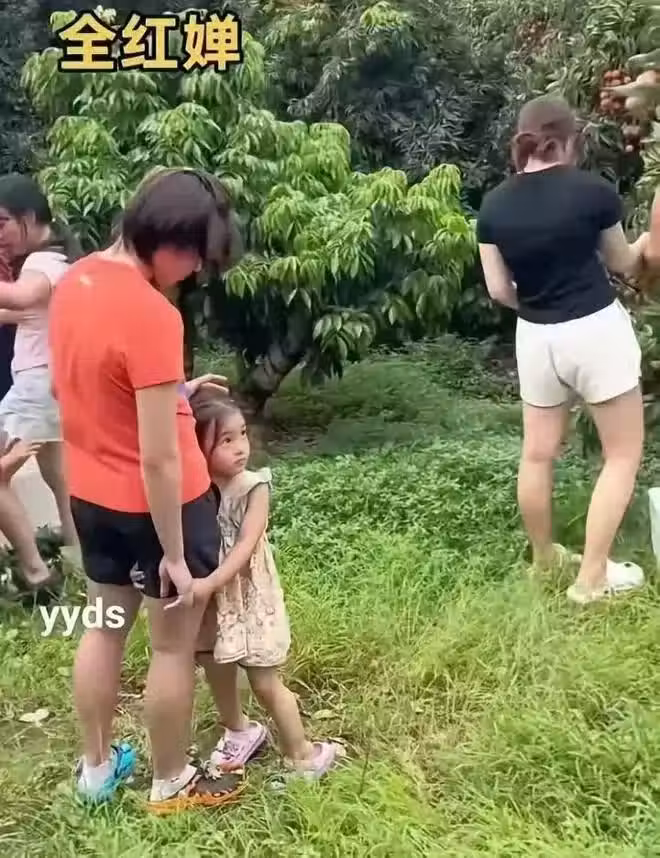 那個小妹妹今年長大不少,全紅嬋耐心地剝荔枝給她吃,她也很黏全紅嬋,拉著嬋寶的手不鬆開。