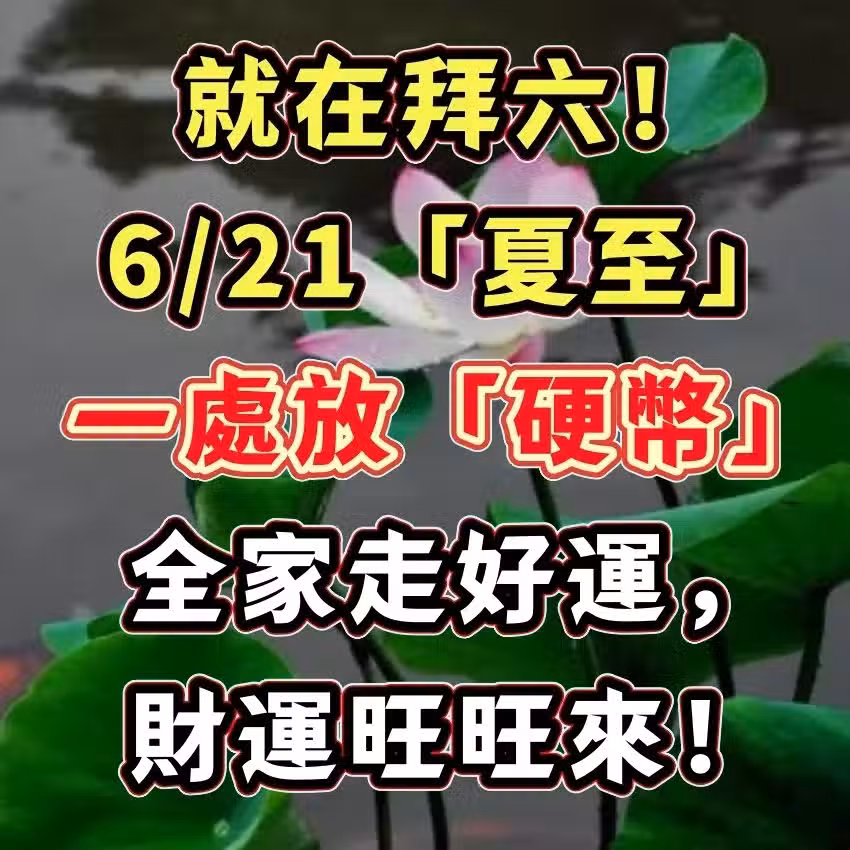 就在拜六!6/21「夏至」一處放「硬幣」全家走好運,財運旺旺來!