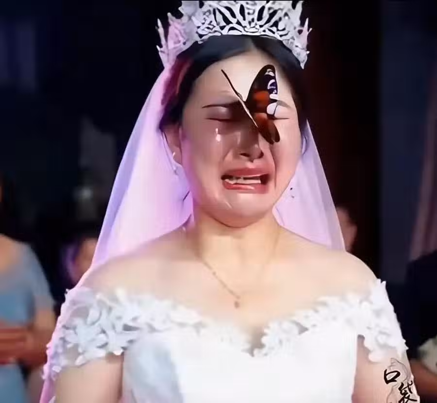 婚禮上,「一隻胡蝶死守新娘」遲遲不走「新娘愣3秒」當場淚崩顫喊:今天他的真來了!!