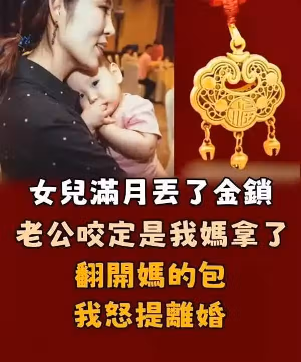 女兒滿月丟了金鎖,老公咬定是我媽拿了,翻開媽的包後 我怒提離婚