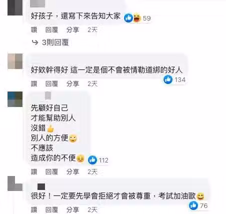 這篇貼文公開後不久,立刻吸引不少網友朝聖圍觀,但並沒有任何人公開抨擊這名學生,反而留言讚賞,「他其實用詞很有條理,是一個思緒很棒的孩子」、「真的沒必要替別人的錯誤買單」、「態度正確,時間到分內事做完就是閃人,考試重要」、「現在翹班幾乎是年輕人的常態了,世道越來越糟」。