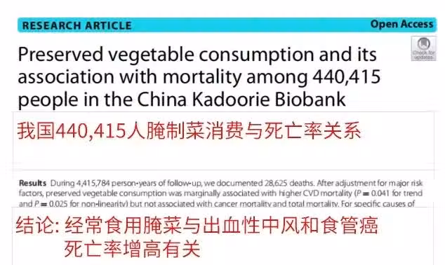 研究收集我國10個不同地區,44萬名30-79歲人群近10年的健康數據。分析發現經常吃腌制菜危害主要集中在三個方面: