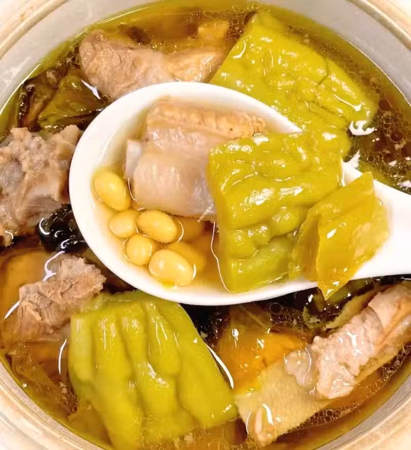 黃豆健脾,苦瓜加速代謝,雙管齊下趕走濕熱;要是覺得苦瓜太苦,可以加兩顆蜜棗,中和苦味還不傷胃。瘦肉和黃豆高蛋白高纖維,喝完飽腹感超強。