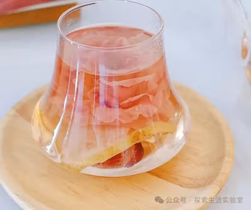玫瑰花理氣解郁,雪梨潤肺生津。乾燥上火時喝它,能緩解咽干口燥,還能讓心情舒暢,特別適合熬夜後或者天氣乾燥時飲用。