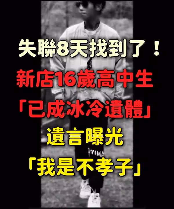 失聯8天找到了!新店16歲高中生「已成冰冷遺體」...遺言曝光「我是不孝子...」