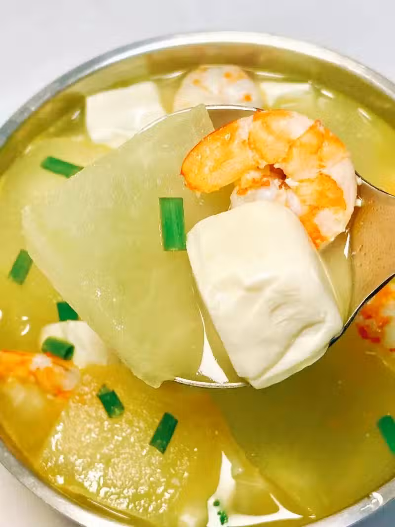 冬瓜是祛濕第一瓜,搭配上高蛋白的鮮蝦,利尿消腫還低脂,減肥期喝超合適。喝完感覺身體的水分都排出去了,小肚子也都扁了。