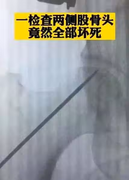 照了核磁共振後,醫生髮現趙男的骨頭有「明顯的黑色腫脹」,且兩側完全壞死。