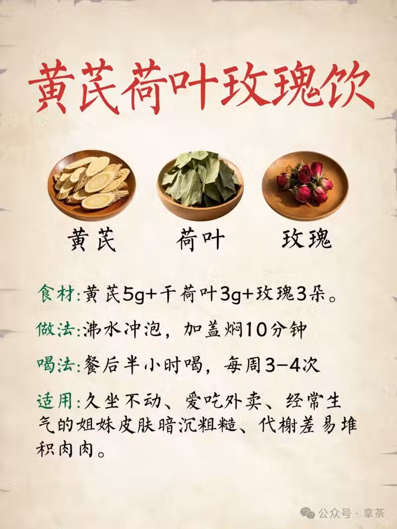 食材:黃芪5g+千荷葉3g+玫瑰3朵。