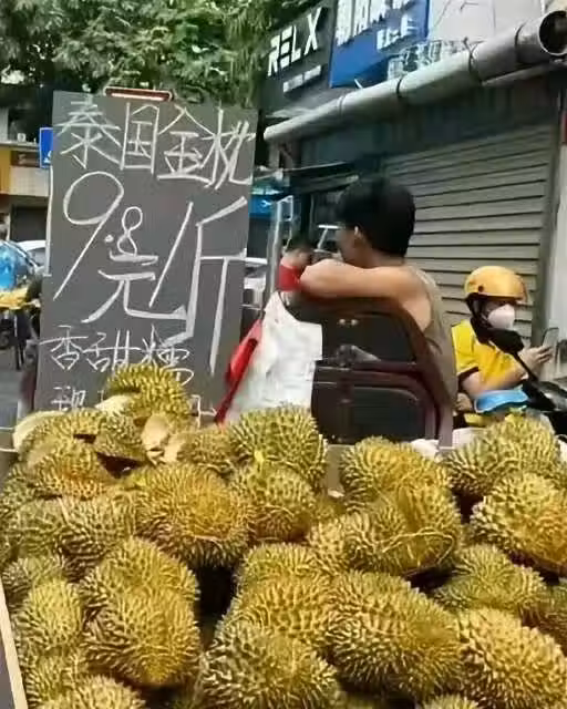 最近,在一次街頭購物中,我被吸引住了:「泰國金枕榴槤,9.8元一斤,甜香糯,現切。 」