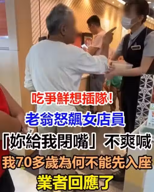 吃爭鮮想插隊!老翁怒女飆店員「你給我閉嘴」不爽喊「我70多歲為何不能先入座」業者回應了