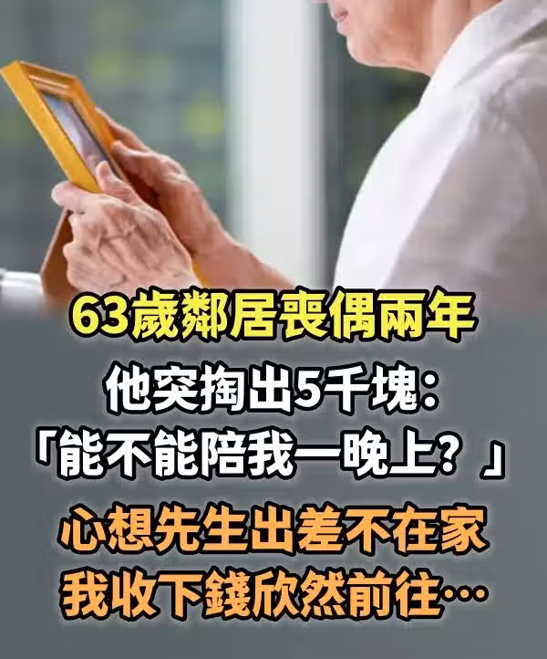 63歲的鄰居王大哥拿了5000塊錢,讓我陪他一晚上,想想反正我老公在外地工作我晚上在家也是一個人,於是二話沒說就答應了63歲的王大哥是我們社區里的,老年人閒著也沒事,他的退休金也不多就一萬五千多,你說女人閒著沒事吧,男人63歲就不工作了,也有點看不慣,他的老伴走了2年了,對生活沒有希望,兒子是找了一個外地的媳婦,別人給介紹來的,孫子已經六歲了,本來日子過的好好的,由於社群網絡的興起,在網絡上又認識了別人,無論怎麼勸說也不聽,非得失婚,去年折騰了一年,這不跟別人給跑了過年也沒有回來,過年他心裡也不痛快,兒子在本地一家工廠上班,我呢也閒著沒事,老公常年在外地工作,孩子還沒有結婚,於是我們沒事了就在社區里打打牌,一來二去都特別熟悉