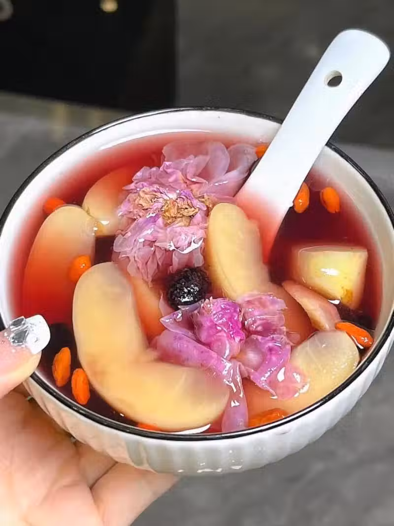 寶子們要是熬夜熬得不行,秋冬季節皮膚乾得像沙漠,臉色蠟黃,那真得試試這蘋果玫瑰茶,滿心滿眼的花青素,一整天都拉滿了。這茶特別適合咱們女孩子,都是對身體好的食材,煮出來香香的,喝完嘴巴都香噴噴的。